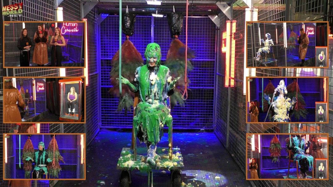 If you've seen the Christmas and New Year specials for 2024, you'll have noticed a little rivalry brewing between host Jenni Stryder and Harriett Tisby. So, Jenni decides the Harriett is going through the carwash without the chance to answer a question. That means, Kimberly will wait nervously in the gunge tank. Once Harriett gets to the end of her very messy carwash ride, she will be presented with 3 ropes, one attached to the big finale above her, the other attached to the gunge tank release above Kimberly. Neither girl knows which is which.
