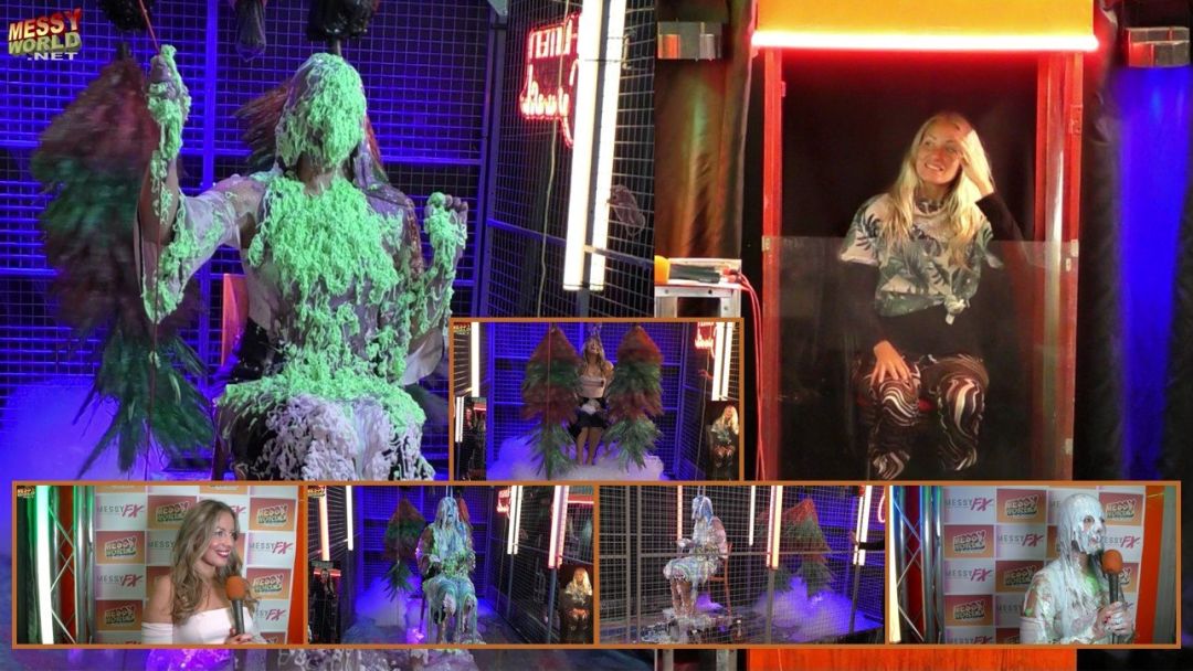 One question decides who will get messy in The Human Carwash. The other contestant will watch from the "safety" of the gunge tank. At the end of the carwash, 2 ropes hang down. One rope is connected to the carwash finale, the other is connected to the gunge tank release. Neither contestant knows which rope is connected to which. The contender in the carwash is only allowed to pull one of them. This week, it is Louisa Lattice vs Emma Kennedy.